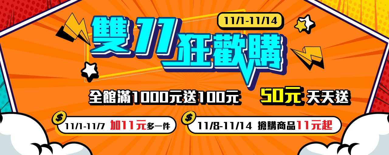 ◤◤ 11/1-11/14優惠券50元天天送◢◢