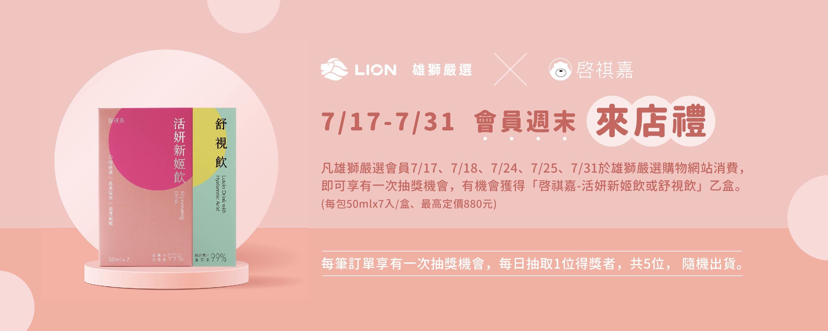 凡雄獅嚴選會員7/17、7/18、7/24、7/25、7/31於雄獅嚴選購物網站消費,