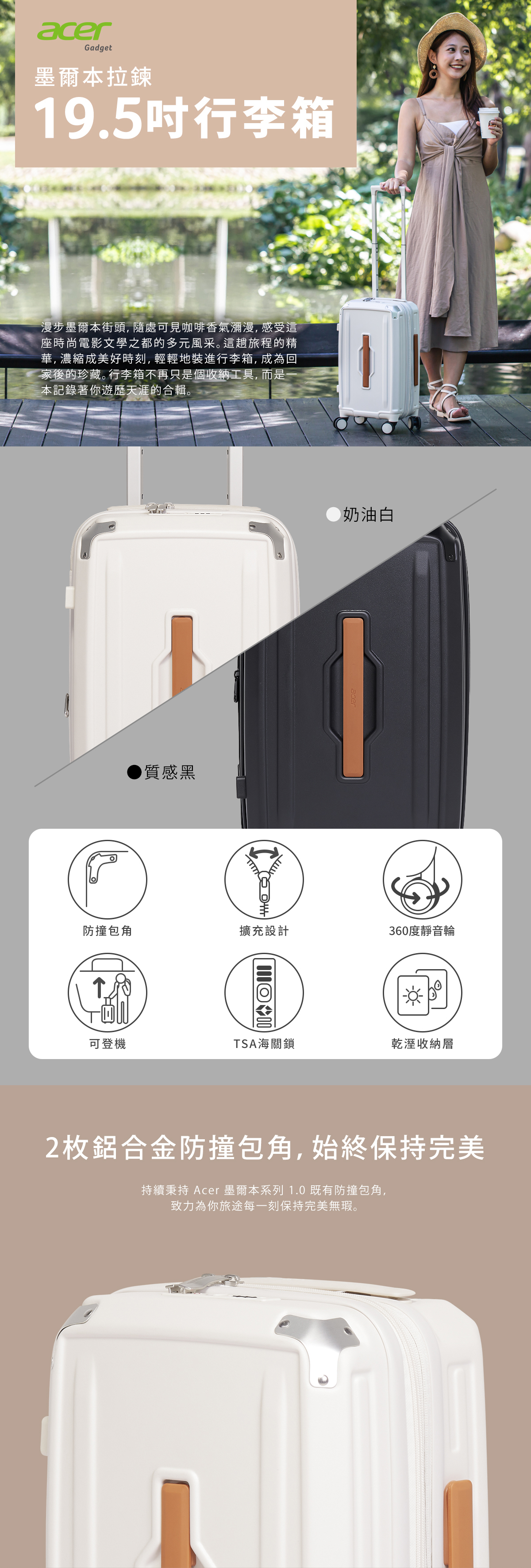 ■2 枚鋁合金防撞包角,始終保持完美