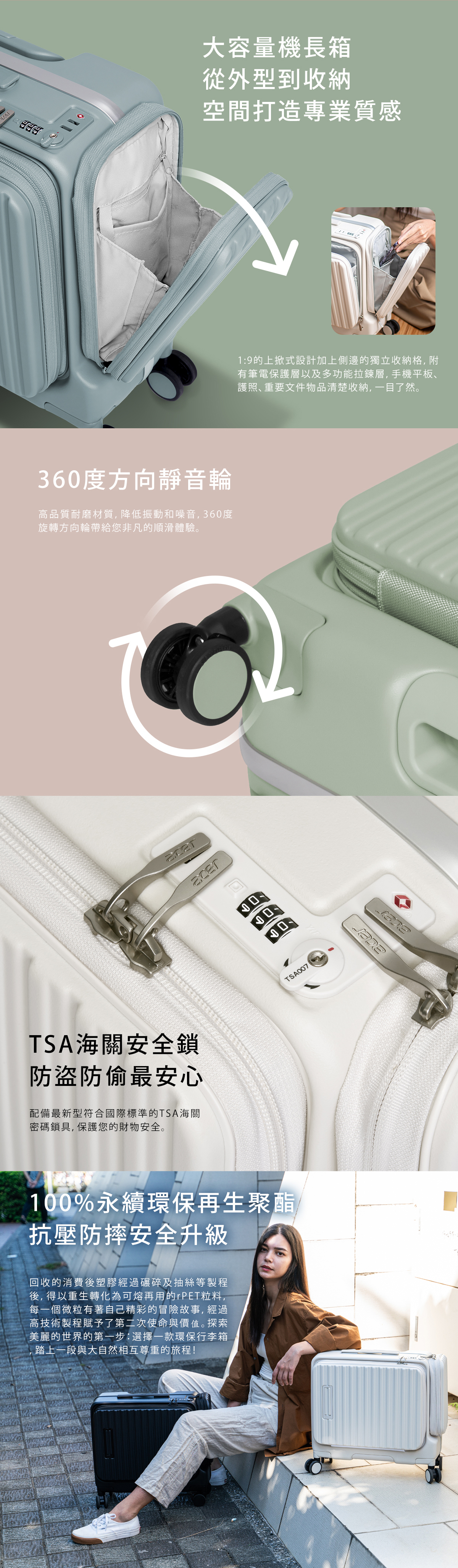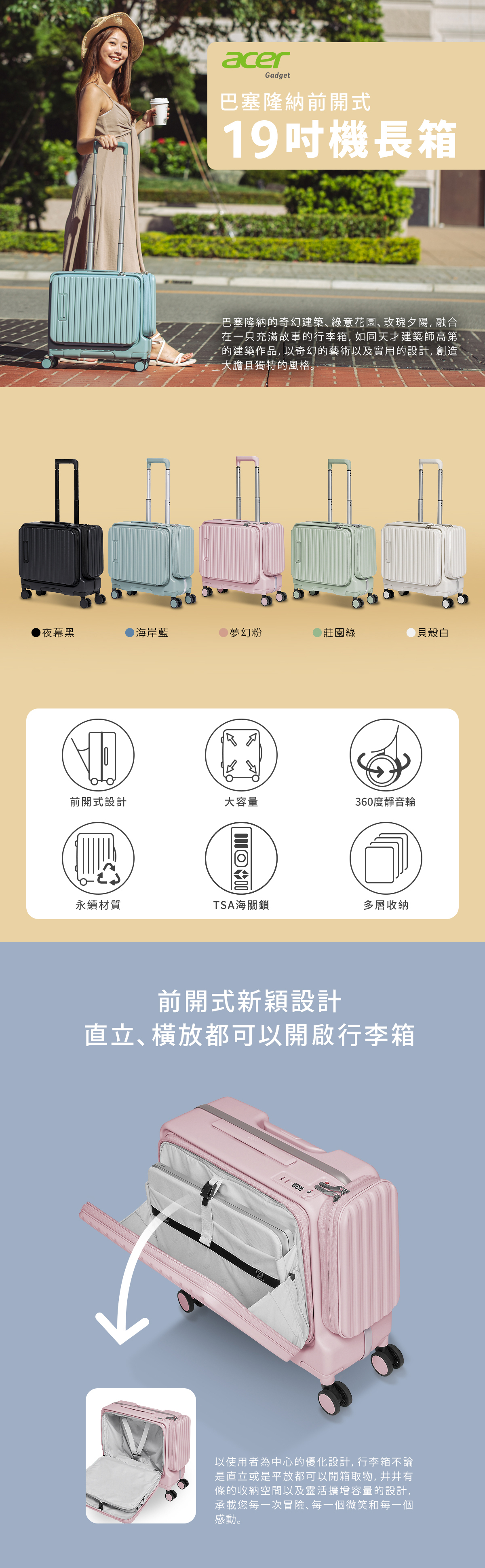 ■ 前開式新穎設計 直立、橫放都可以開啟行李箱