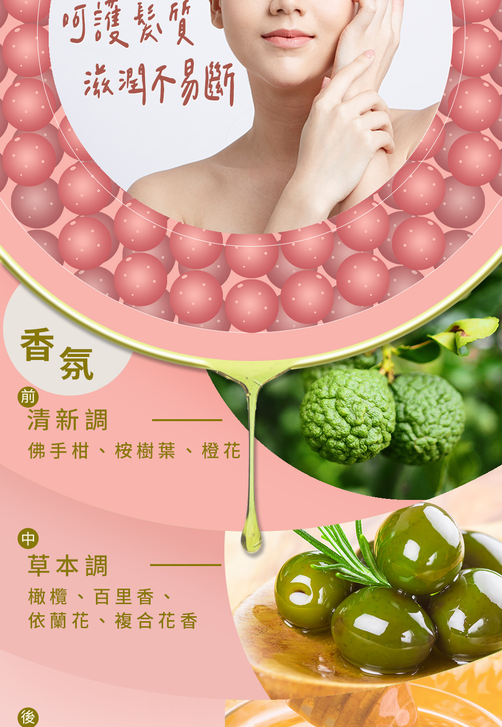 2.潤髮乳:(Aqua、Cetyl Allcohol、Cetrlmonium Chloride、Hydroxyethylcellulose、Parfum、Citric Acid、DMDM Hydantoin、Olea Europaea Fruit Oil、CI 19140、CI 16255、CI 42051)。