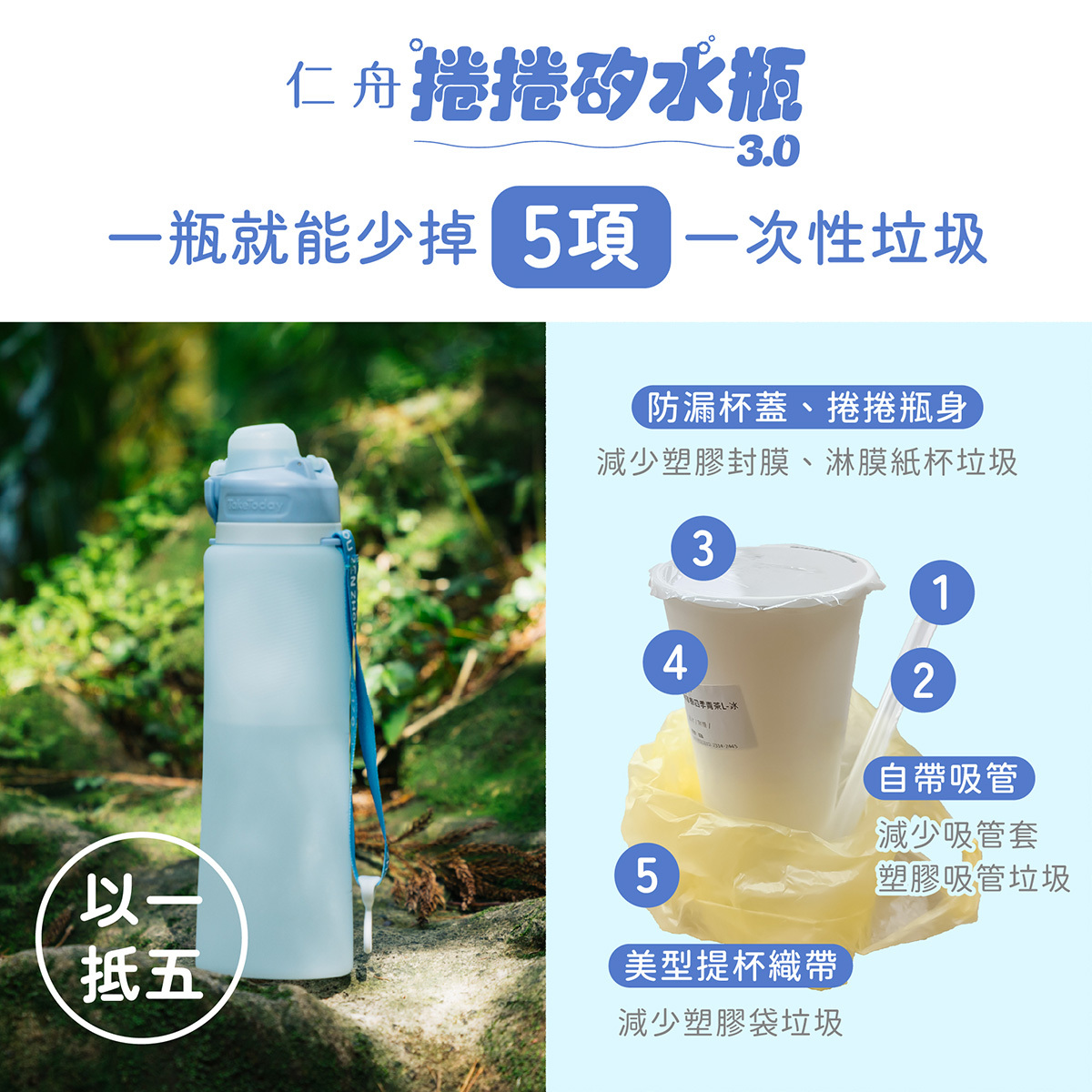 仁舟淨塑-捲捲矽水瓶3.0 (附吸管)_600ml (沁藍/栗沙/夜黑/森綠)
