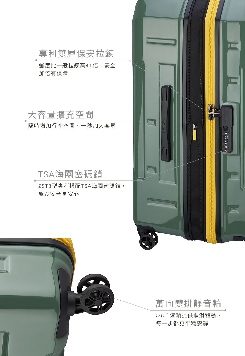歐洲知名品牌DELSEY是全世界最安全的旅行箱,集合15大頂尖設計師團隊,打造出世界專利ST保安拉鍊,融合流行設計與堅固耐用的性能,讓全球旅行者帶來更多的安全與保障。
