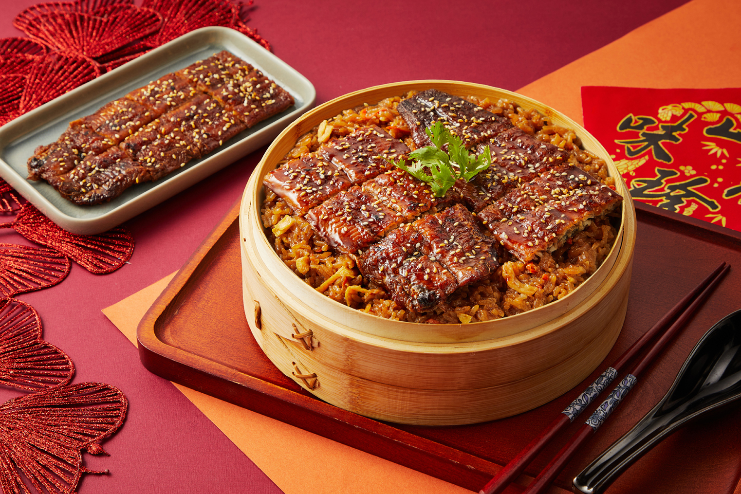 米糕在年菜中象徵「年年高升」的祝福,由日本米其林推薦的《鰻魚四代目菊川》,使用精心挑選的鰻魚,每片皆採用門店師傅現烤,香脆的魚皮,鬆軟肥厚的魚肉,搭配改由日式手法製成的炊飯,作為年菜中的主食,極致奢華美味。