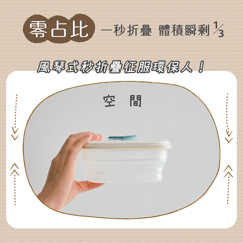 能收能伸二段變形金剛,結實耐摔的萬用寶鮮盒。盒蓋氣塞化身為會呼吸的軟Q動物們,吸氣按下簡易真空效果保鮮更持久,呼氣拉起連蓋直接加熱安全又方便。一呼一吸間,守護您的健康與美味。