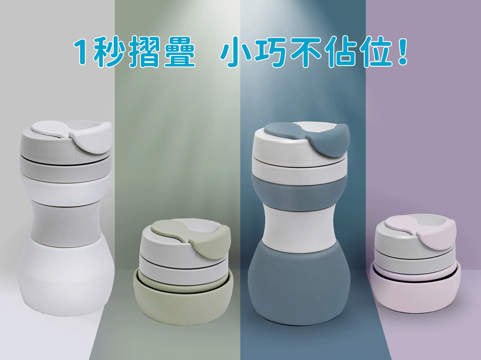 食品級矽膠杯身,天生柔軟,可折疊,放入包包也輕巧。