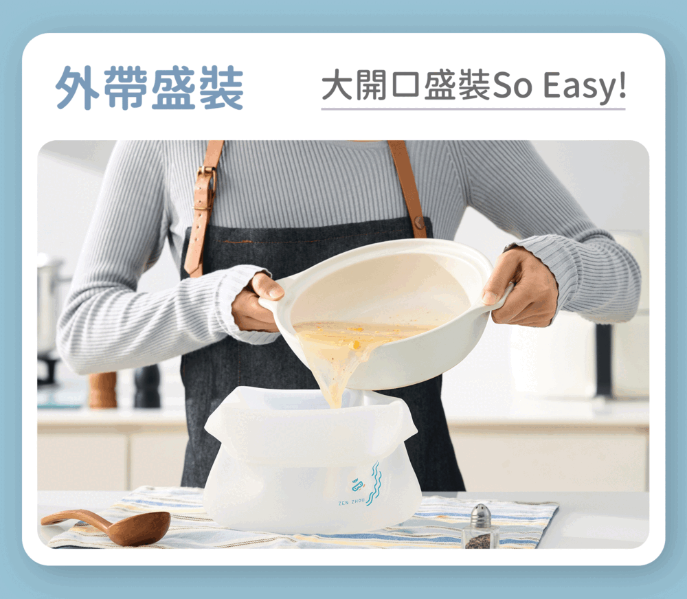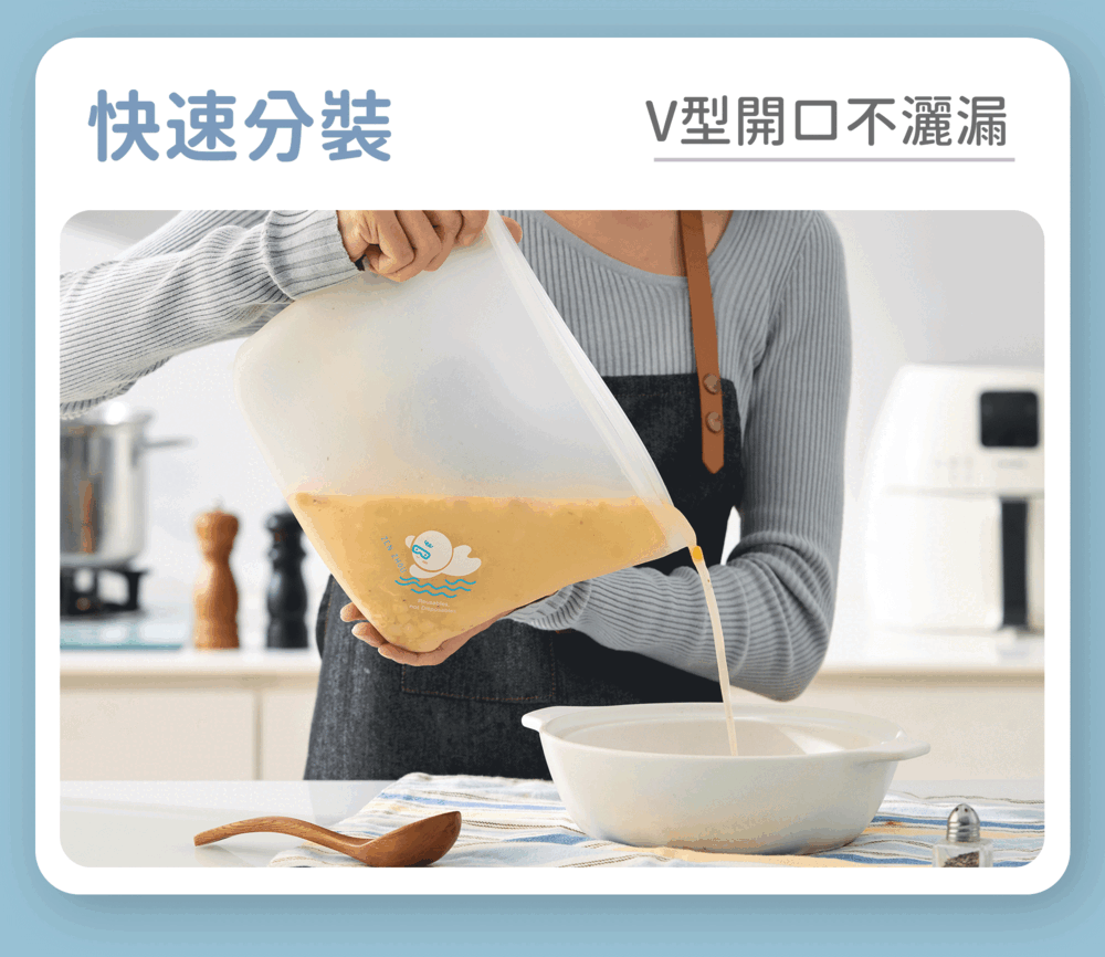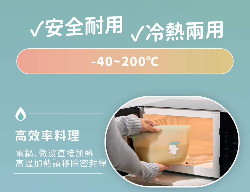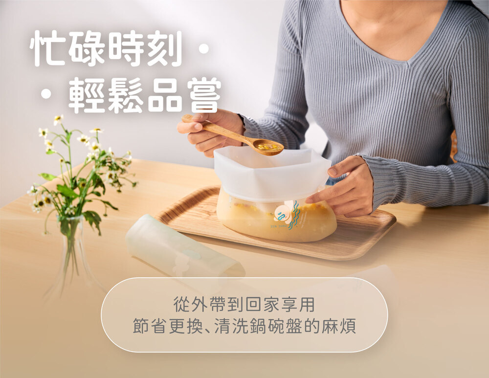 以食品級矽膠打造,無須擔心塑化劑殘留,是盛裝食物、保鮮的好選擇!