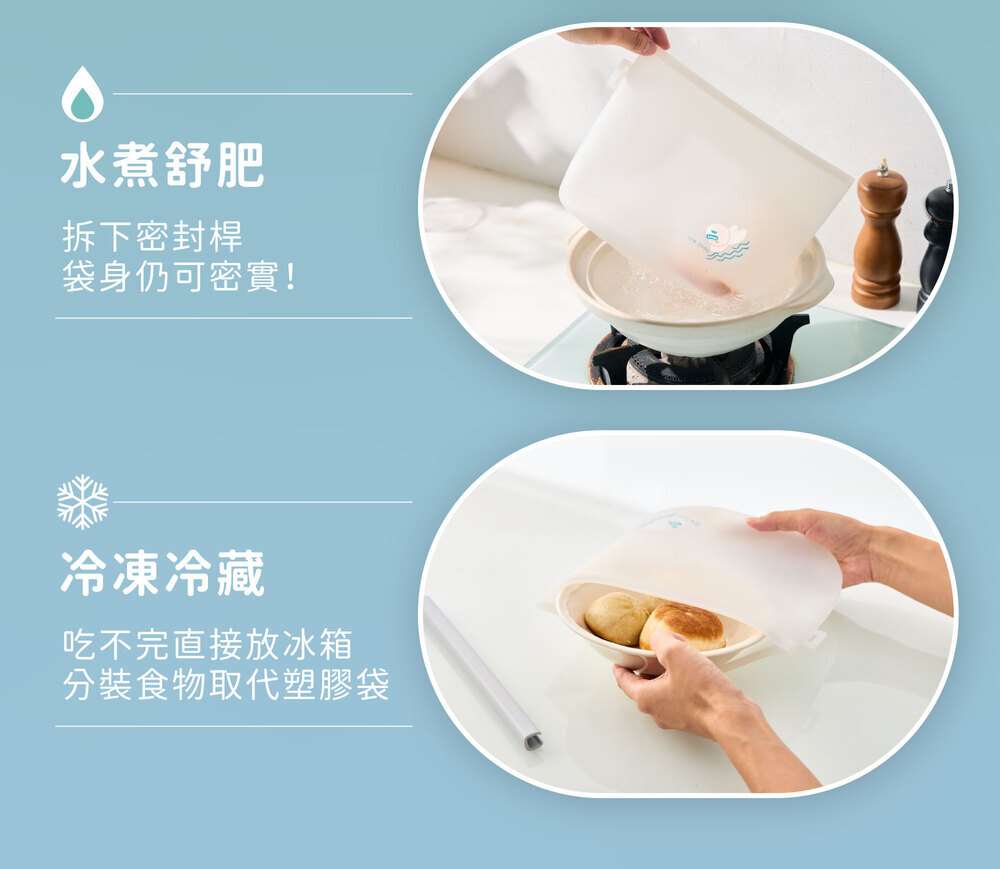 【商品成分】食品級矽膠(袋身)、PP(密封桿)