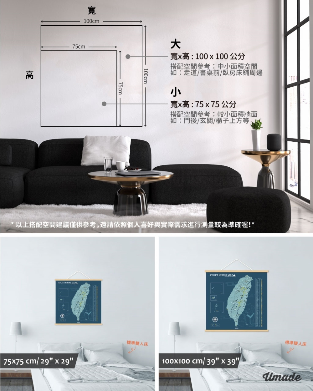 以台灣百岳與小百岳為靈感,Umade 將山岳風景轉化為居家裝飾藝術。峰礦藍色調搭配實木畫框,無神獸設計更顯純粹極簡,適合登山控、地圖控收藏,打造專屬的旅行風格牆面。