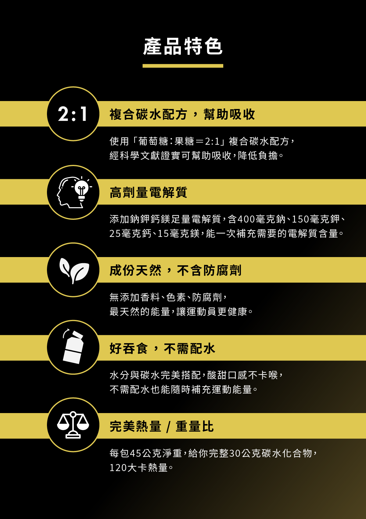 ✔ 含高劑量電解質,大量流汗適用
