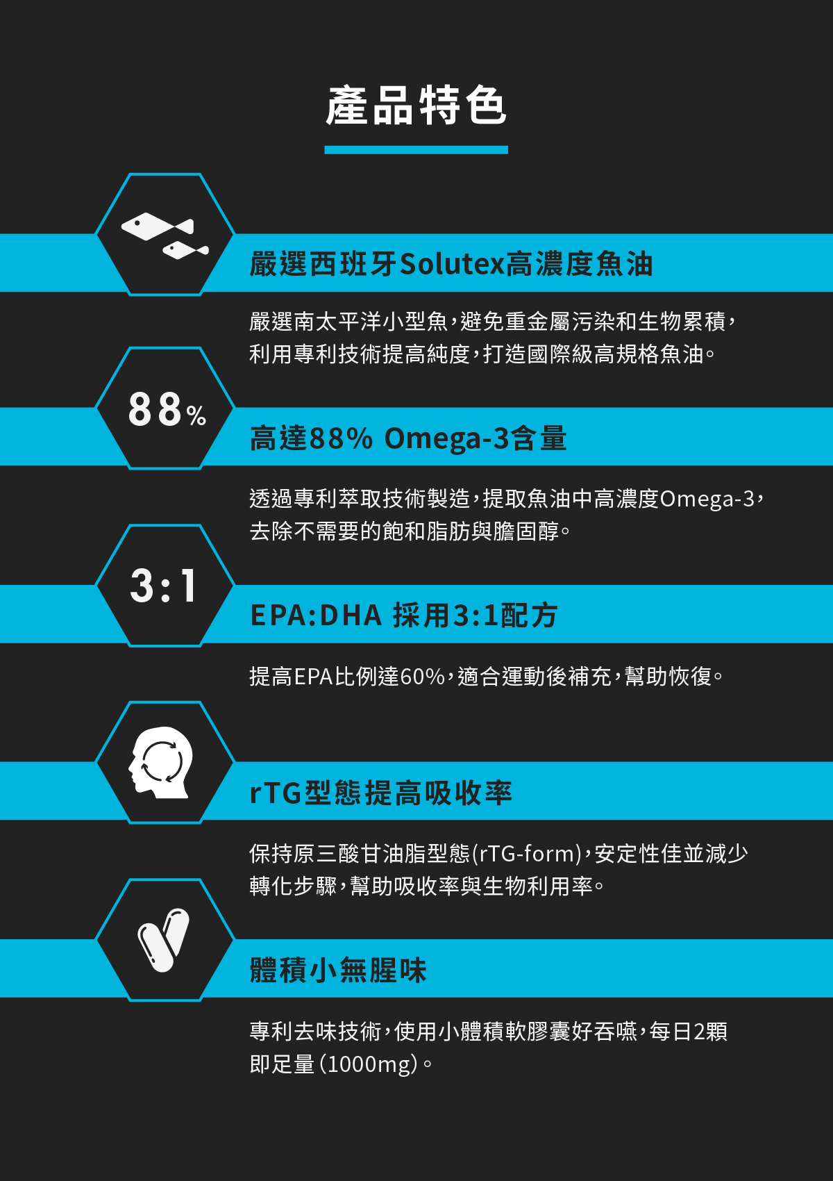 UP Sports運動魚油膠囊專為追求健康與運動的您設計。每粒膠囊富含高純度的88%Omega-3,支持日常運動後所求,並提升整體健康狀態,幫助身體恢復。無論您是在健身房鍛鍊、戶外活動、海外旅遊,這款運動魚油都能成為您的好幫手,幫助身體維持健康。選擇UP Sports,讓您的運動之路更加順利!