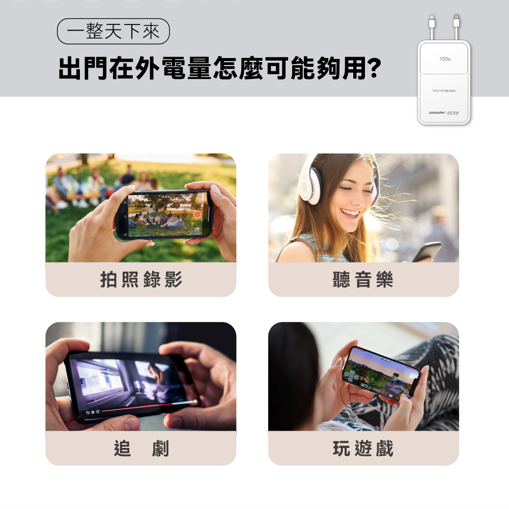 ✔ 20,000mAh 大容量,長時間外出適用