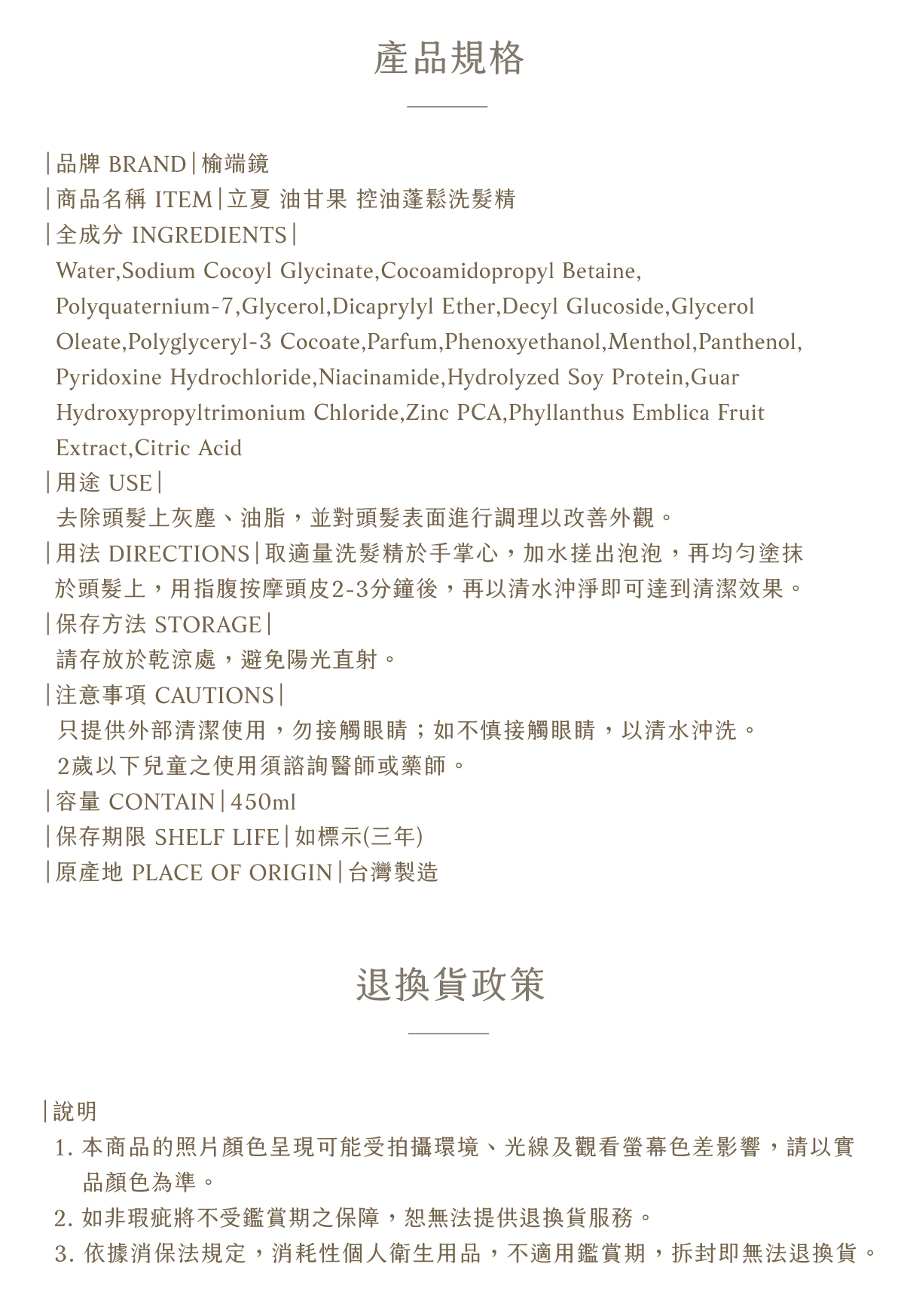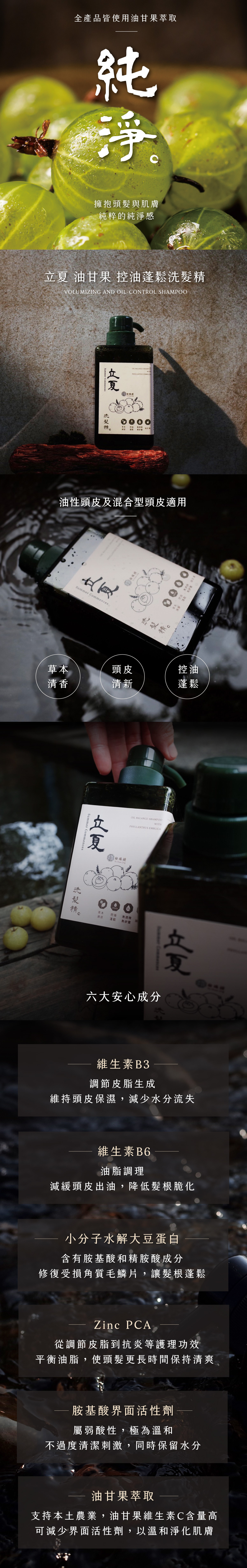 榆端鏡立夏油甘果控油蓬鬆洗髮精,專為油性與細軟髮設計,蘊含天然油甘果與草本配方,溫和清潔頭皮油脂,讓秀髮輕盈蓬鬆不扁塌。適合夏日及易出油髮質,洗後清爽柔順,散發淡雅草本香氣。