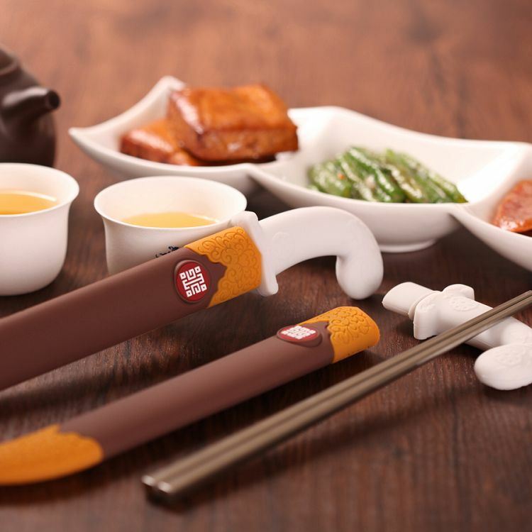 圓您內心深處的武俠夢,刀劍箸取中國經典兵器造型作為環保筷套設計。趣味的拔取使用體驗與精美的紋飾點綴,重現古俠士『路見不平,拔刀相助(箸)』的瀟灑姿態。